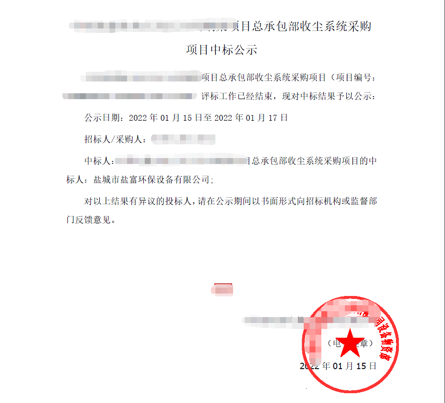 開(kāi)年傳喜訊,近日從招標(biāo)單位傳來(lái)好消息,鹽富環(huán)保成功中標(biāo)又一大型砂石骨料項(xiàng)目總承包收塵系統(tǒng),實(shí)現(xiàn)開(kāi)門(mén)紅。